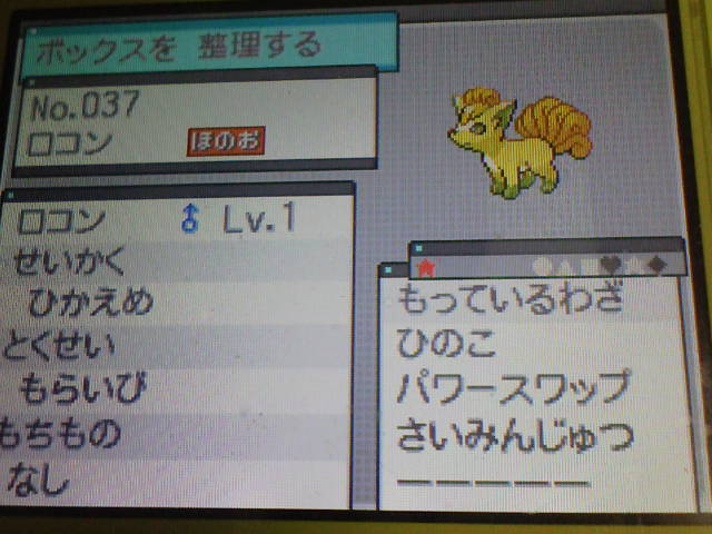 時間がかかった割に個体値も低く、性格も特性もはずれてました。